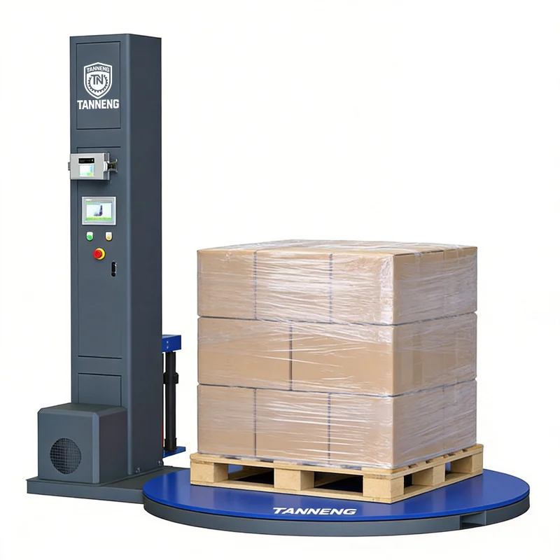 The TANNENG weighing-type wrapping machine integrates a weighing module with automatic wrapping functionality, enabling packaging and weighing to be completed simultaneously without requiring secondary handling to obtain cargo weight data. The equipment utilizes PLC intelligent control, variable frequency speed regulation, and a pre-stretched film frame, allowing for free adjustment of film tension, wrapping layers, and packaging height. Coupled with a photoelectric automatic height measurement and stable top pressing device, it effectively prevents cargo from toppling and scattering. The entire machine operates smoothly, is easy to operate, and provides accurate and traceable weighing data. It also offers packaging effects such as moisture resistance, dust prevention, and cargo stabilization, making it widely applicable to industries requiring simultaneous metering and wrapping, such as logistics warehousing, food, chemical, and building materials. This significantly enhances the efficiency of integrated packaging and weighing operations.